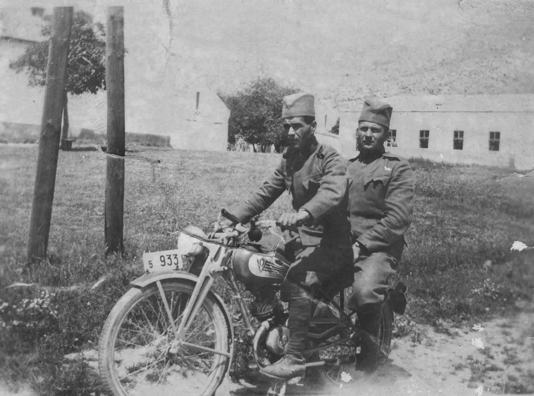 Ivo Radomiljac, vojni rok, vozi motor u Prizrenu (Kosovo) 1922.