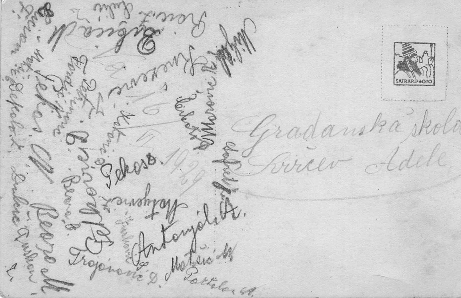 Svirčev Adela, 4. razred - potpisi učenika na naličju 1929.g.