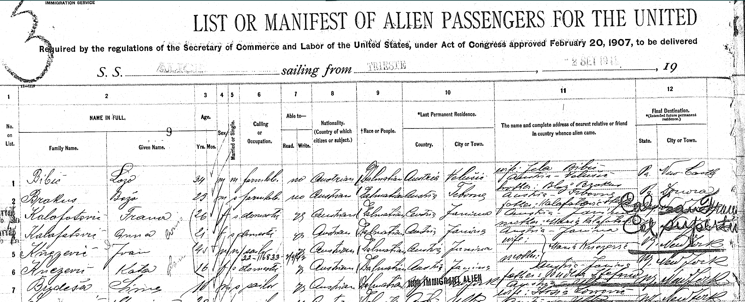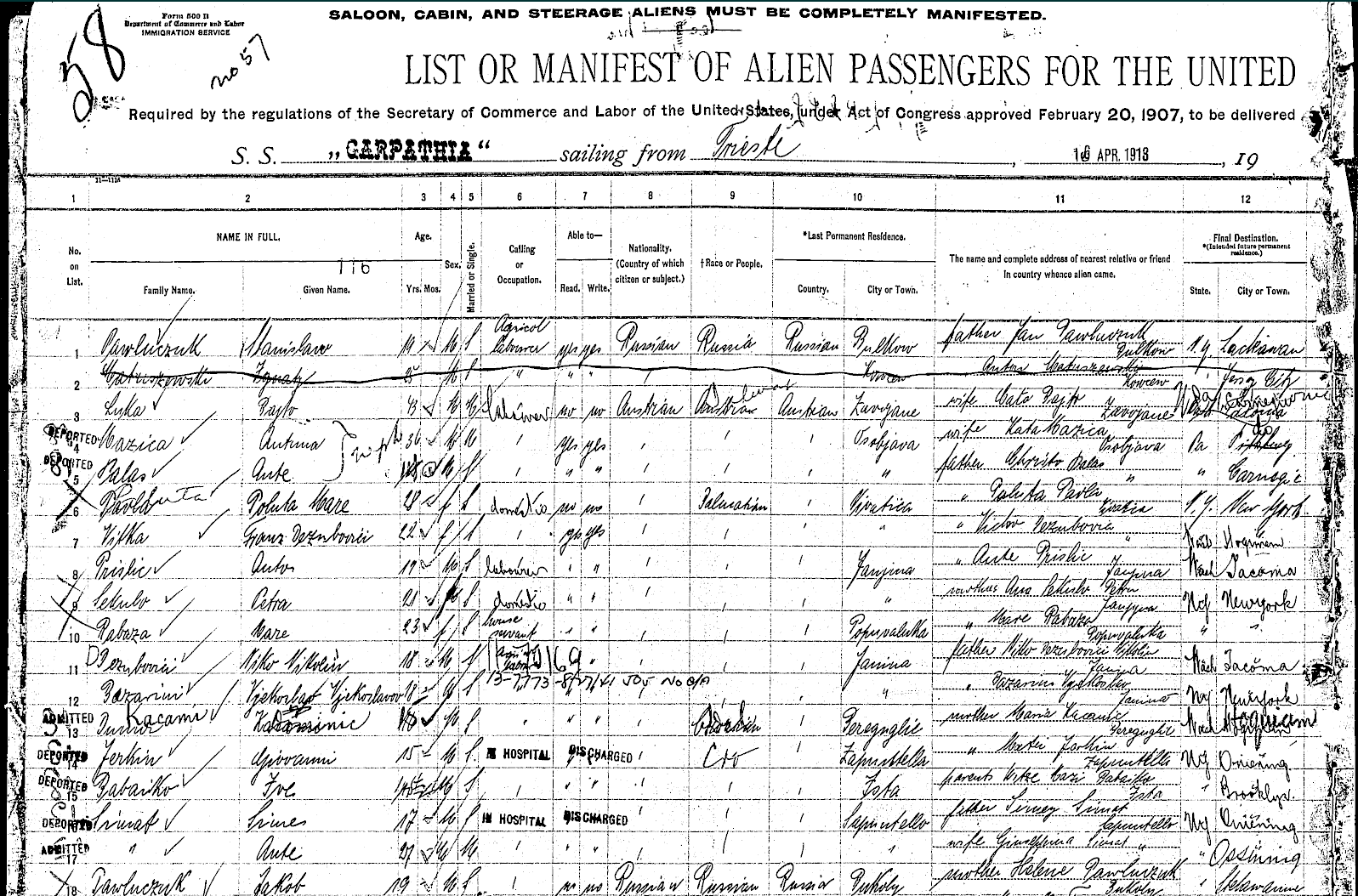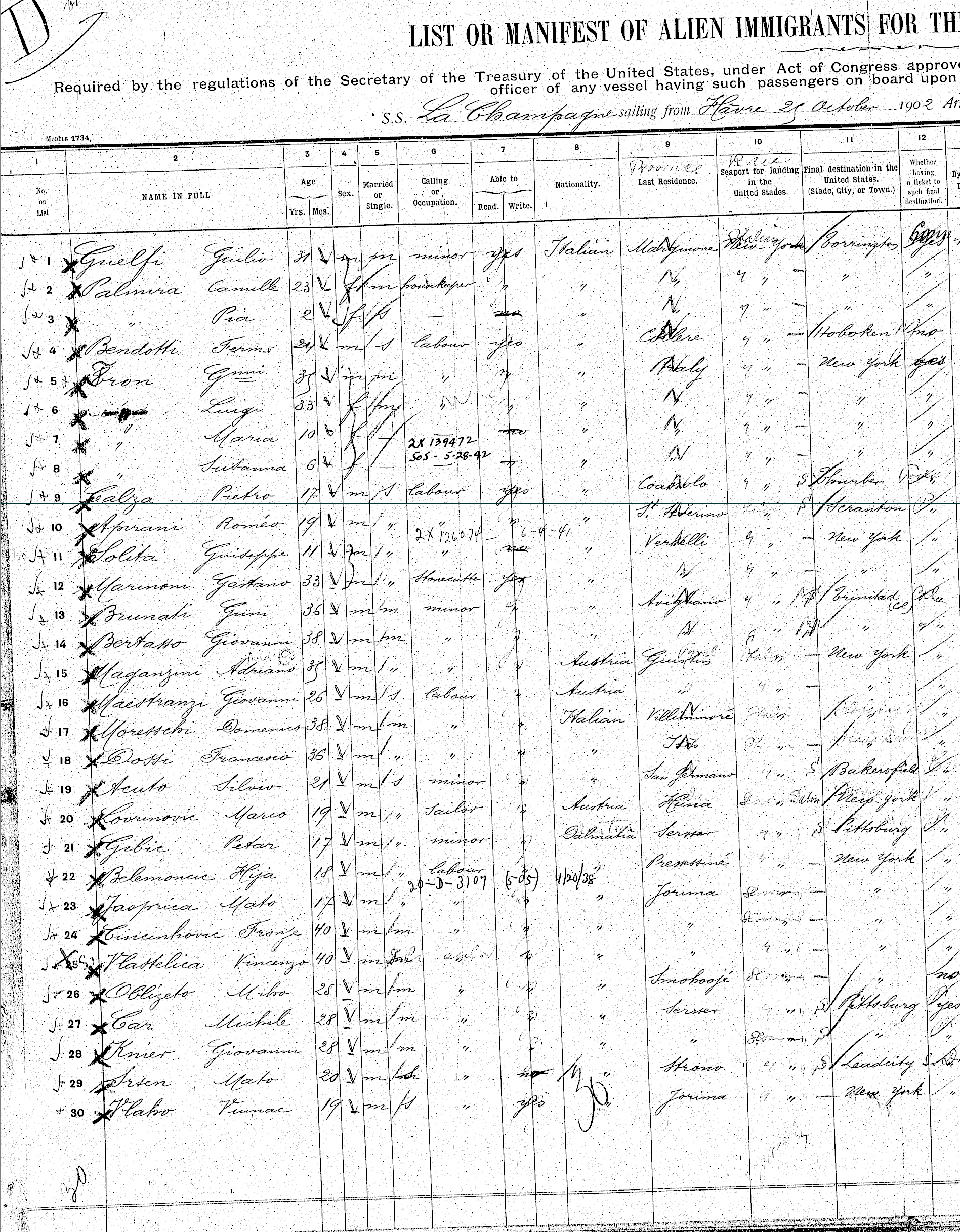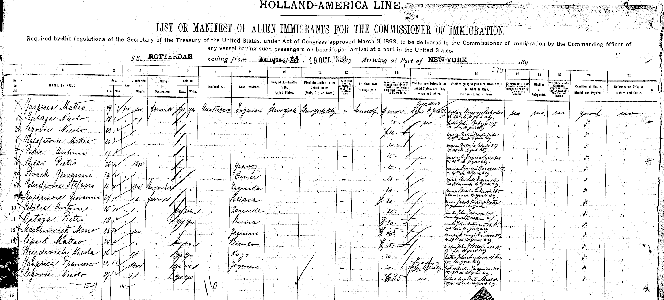 lista (manifesta) putnika koji su ušli u Sjevernu Ameriku preko