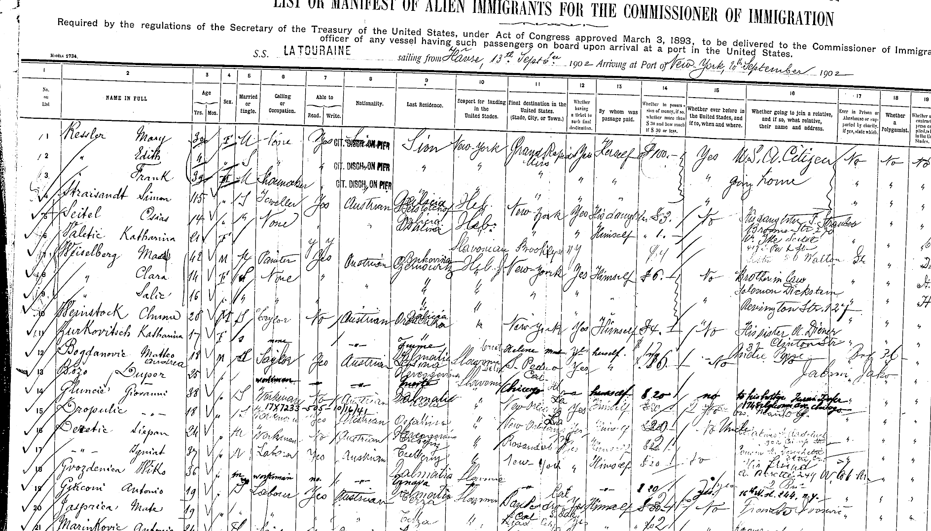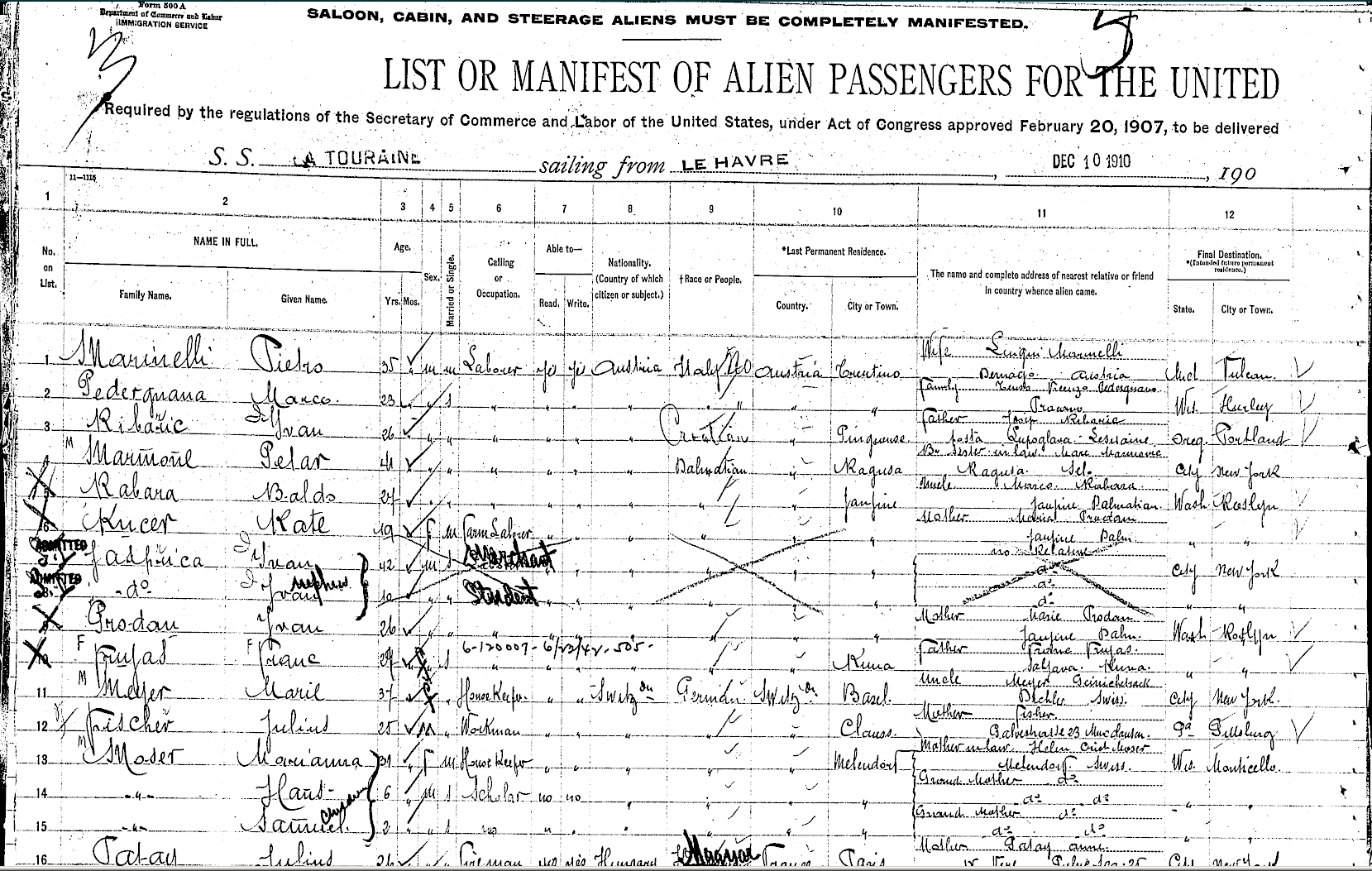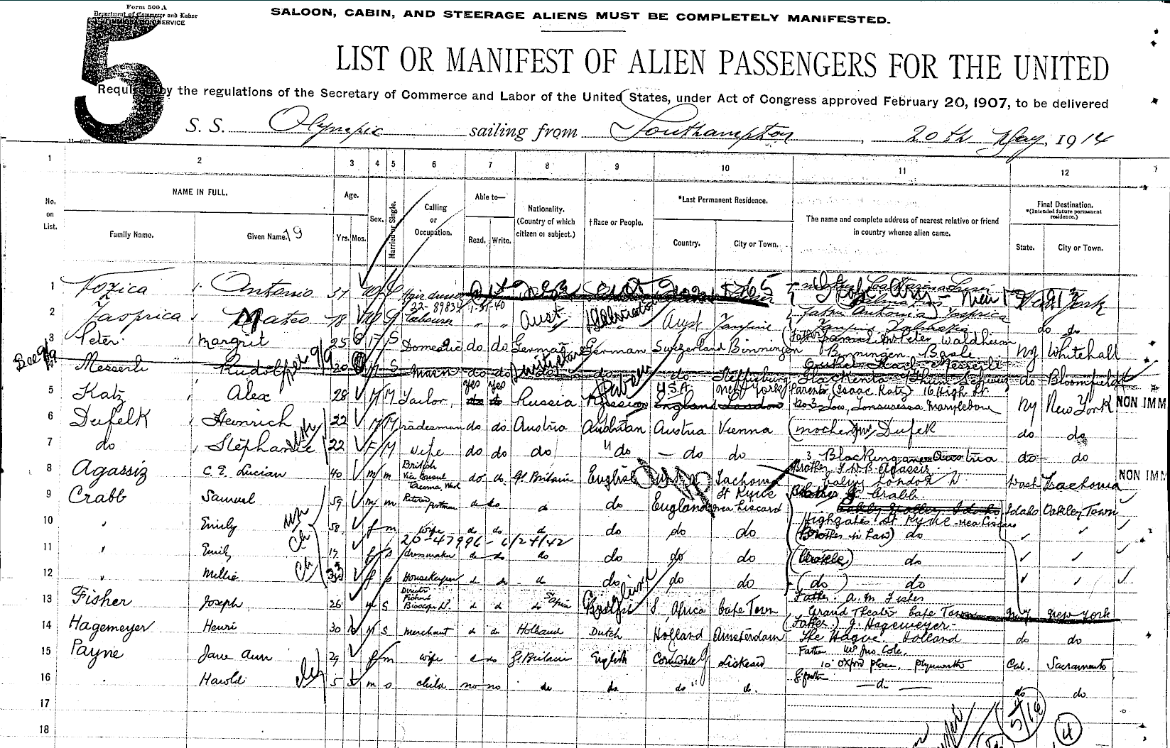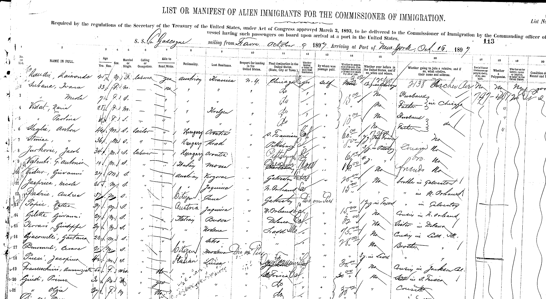 lista (manifesta) putnika koji su ušli u Sjevernu Ameriku preko